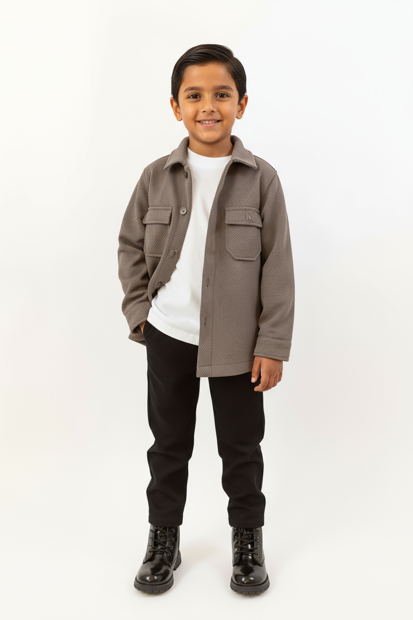 This Structured Overshirt is styled with two front top pockets. The premium fabric makes and the versatile style make this overshirt timeless and yet fits any occasion. A must-have for your kid!