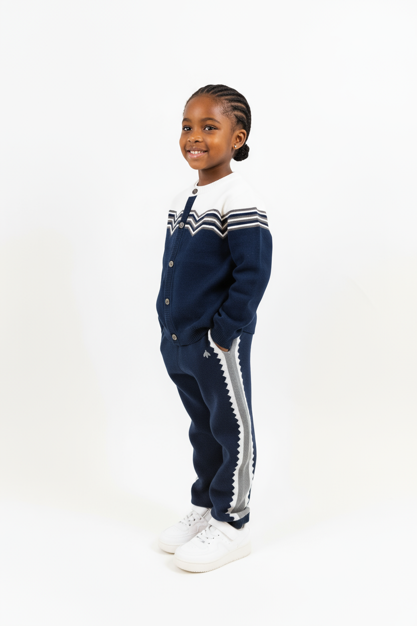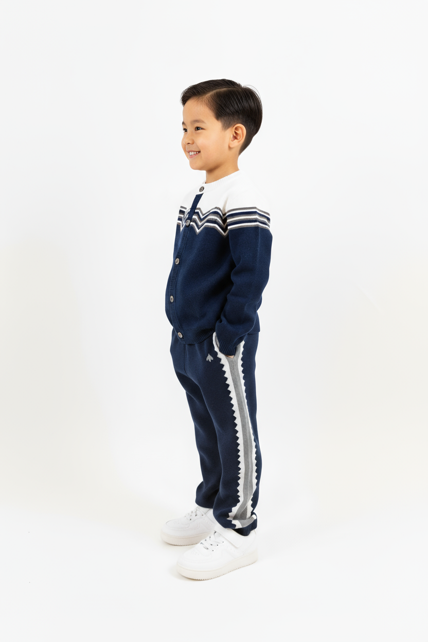 Mjuk Stickad Buzz Cardigan - Admiralblå - Opalvit