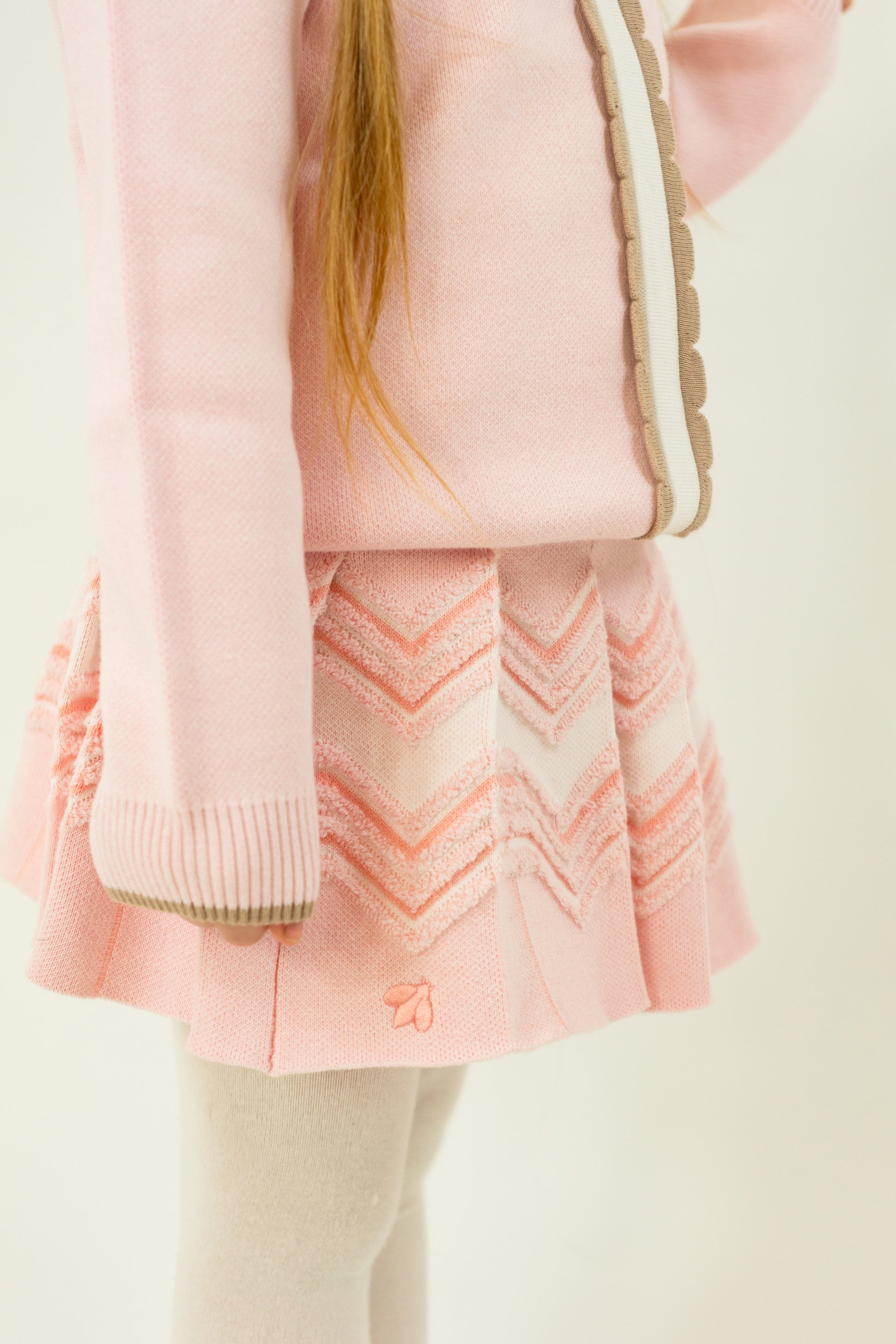 A unique pattern with a textured 3D effect, adding depth and modern style to the skirt.