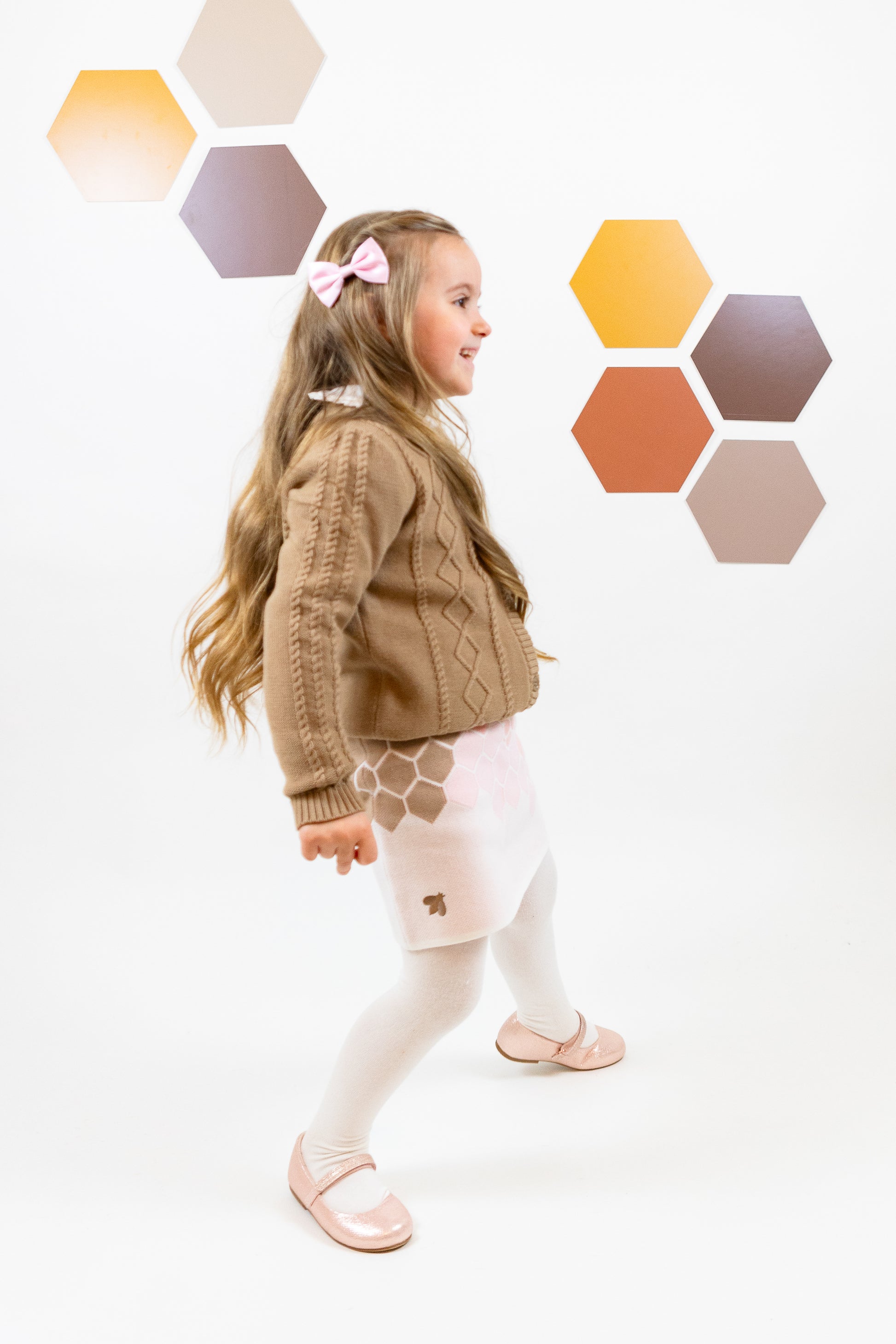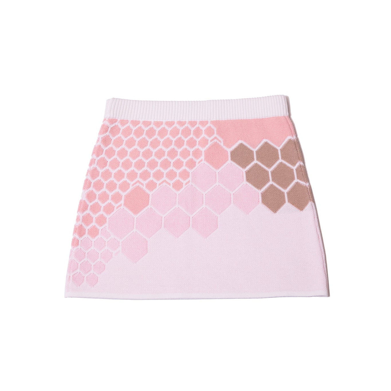 A unique honeycomb pattern creates a textured 3D effect, adding depth and modern style to the skirt.