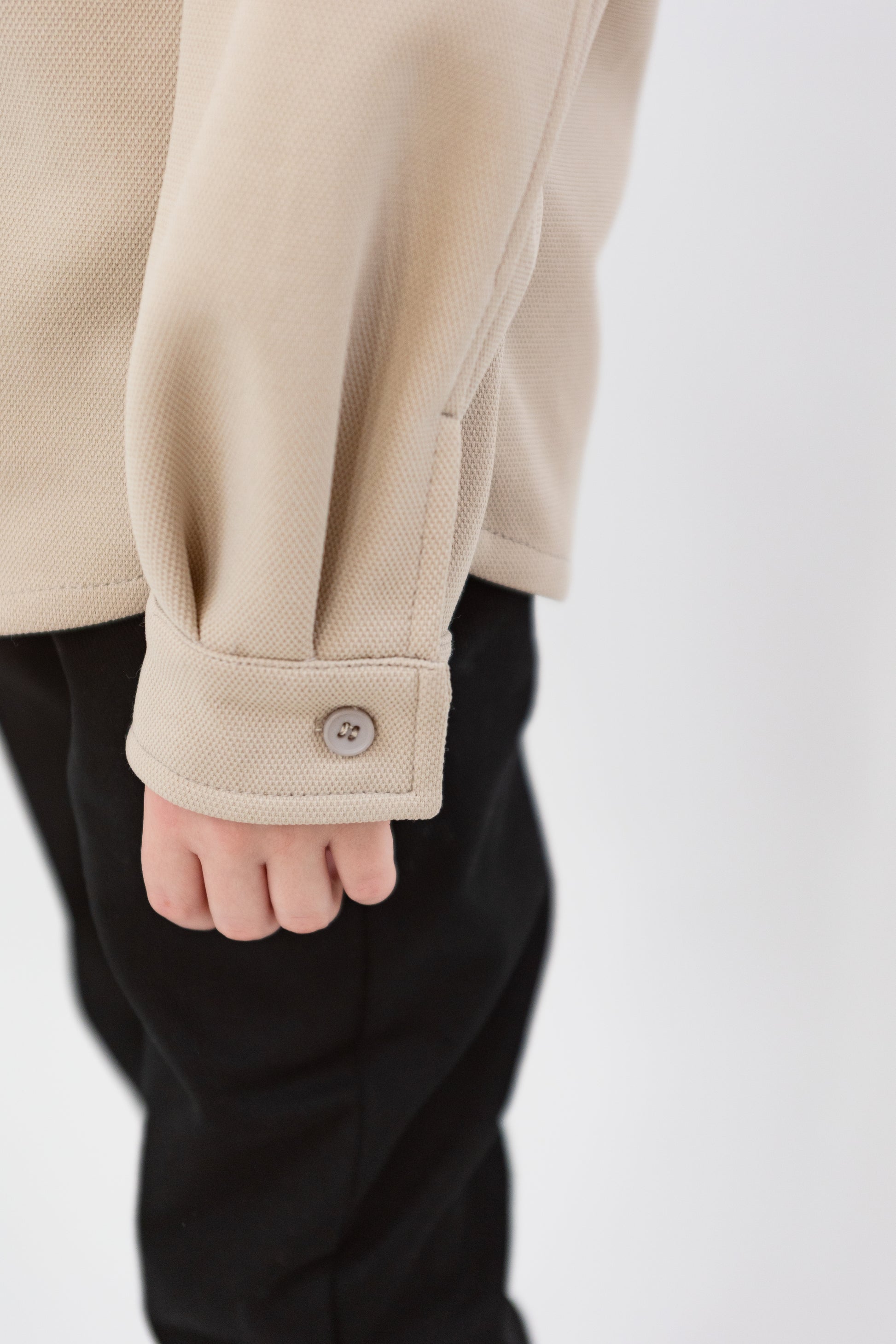 Denna strukturerade kavajskjorta har en unik kavajkrage som verkligen får ditt barn att sticka ut. Kavajlooken gör den snygg men ändå mångsidig som en skjorta för alla evenemang.