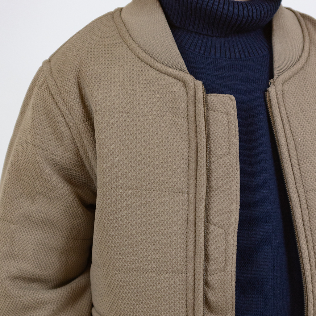 The Rex Padded Bomber Jacket in Structured Fabric is a statement piece that combines contemporary style with practical comfort. Made from heavy structured knitted fabric and padded for warmth, this jacket is both elegant and versatile. Featuring luxurious front pockets and a refined silhouette, it’s perfect for both casual outings and dressy occasions.