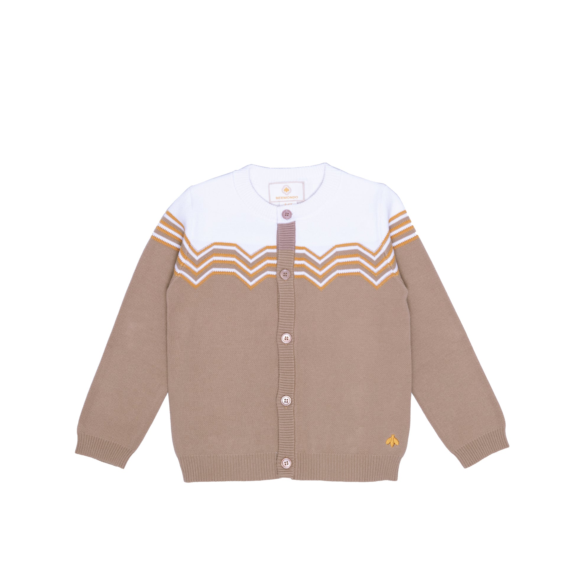 Experience a playful sense of movement with our elegant long-sleeved knit cardigan. It features a jacquard knit with a dynamic Buzz design. This 100% cotton cardigan adds a touch of sophistication to any outfit. Comfortable and stylish, it's a must-have item.