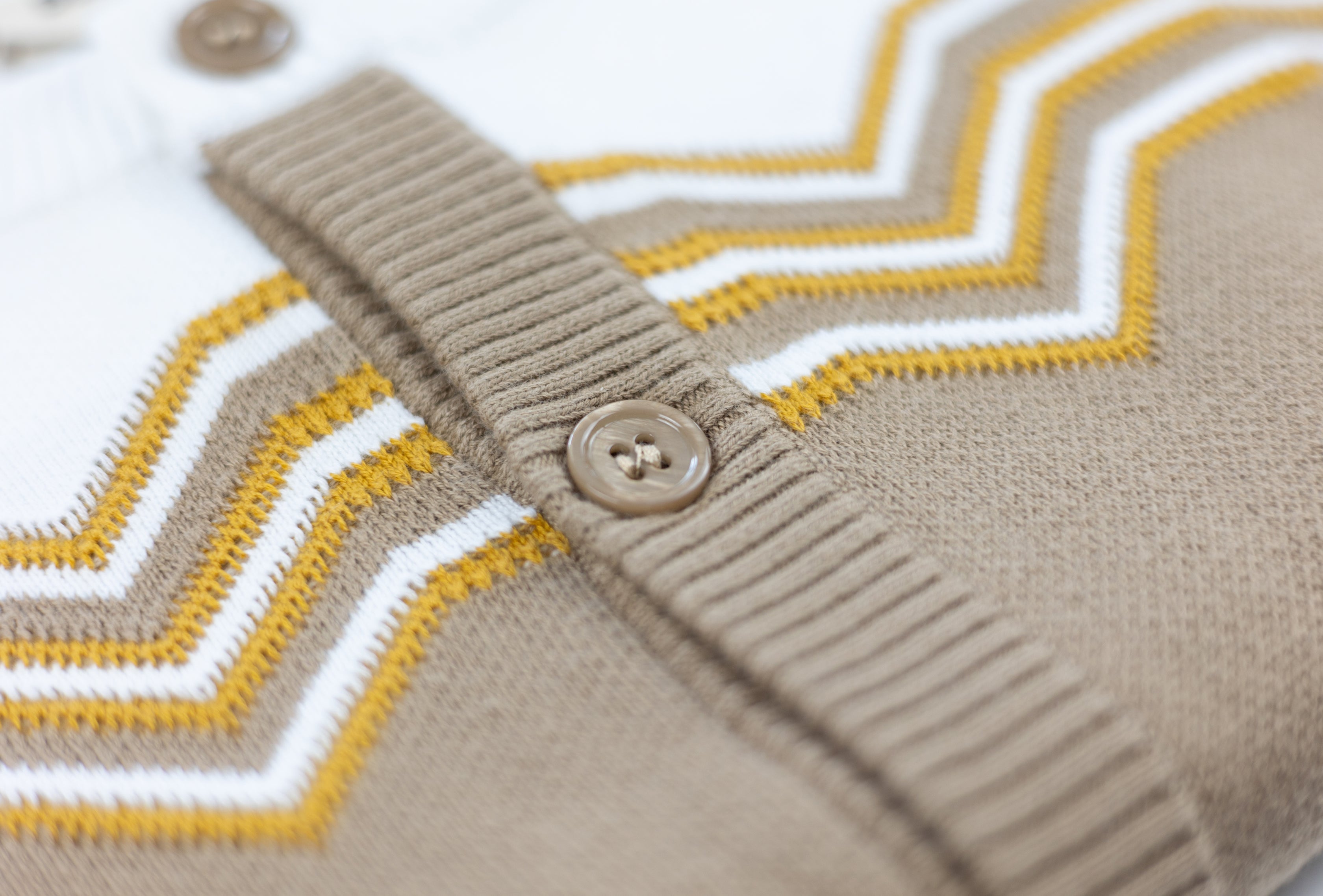 We have chosen natural mother of pearl buttons to provide an elegant finish with a soft, pearlescent sheen. Selected for their durability, quality, and timeless appeal.
